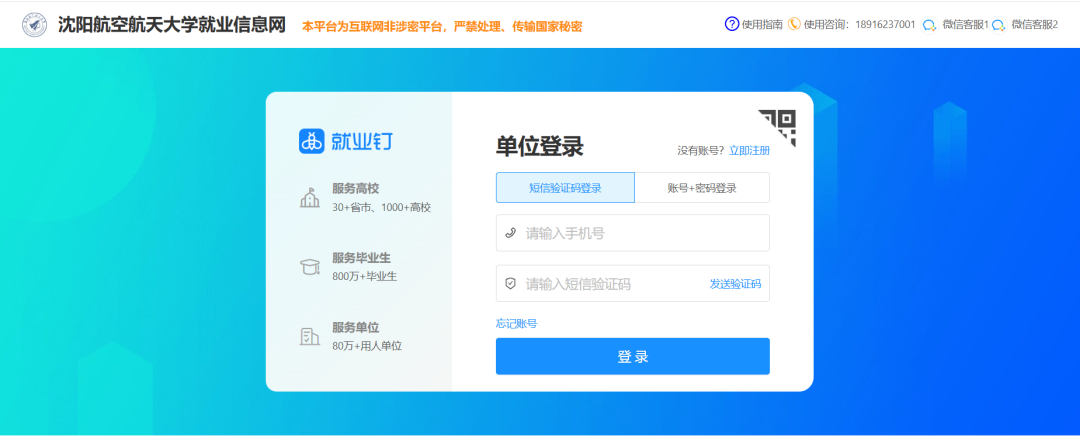 我校就业信息网用人单位登录界面